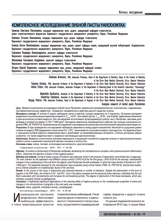 Комплексное исследование зубной пасты Parodontax